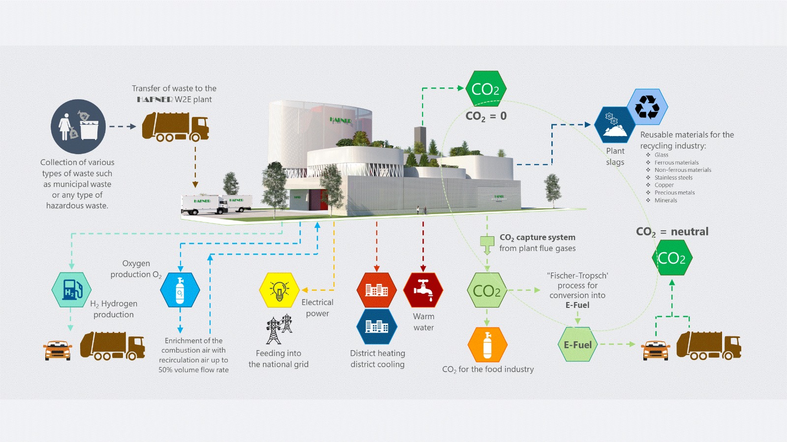 - Energy from Waste: Energy (electricity, cooling, district heating) from household or hazardous waste;